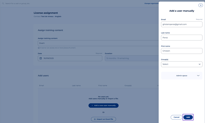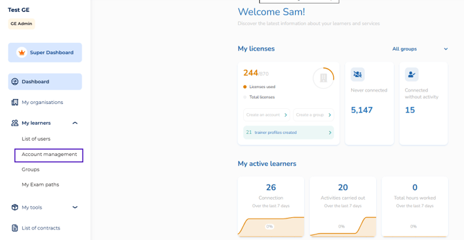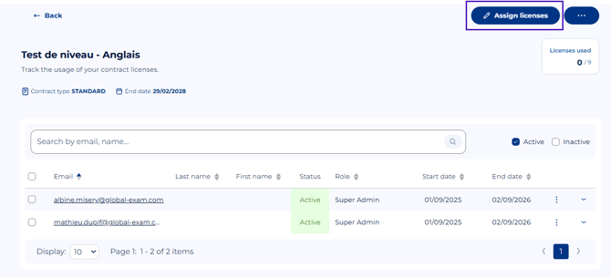 Once you have an Administrator account in the context of a contract with GlobalExam, you can activate your learners' licenses yourself.