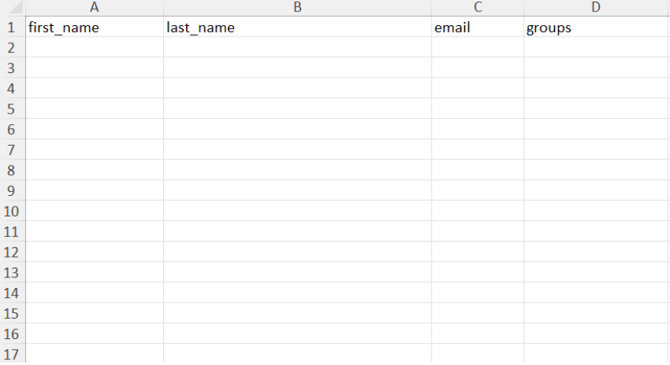 Complete the spreadsheet with your learners’ data (only the email column is mandatory).