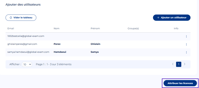 - Cliquer pour finaliser l'inscription sur "Attribuer les licences"