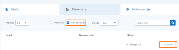 - Cherchez l'adresse mail de l'apprenant que vous souhaitez associer, puis cliquez sur "Associer". Et voilà !