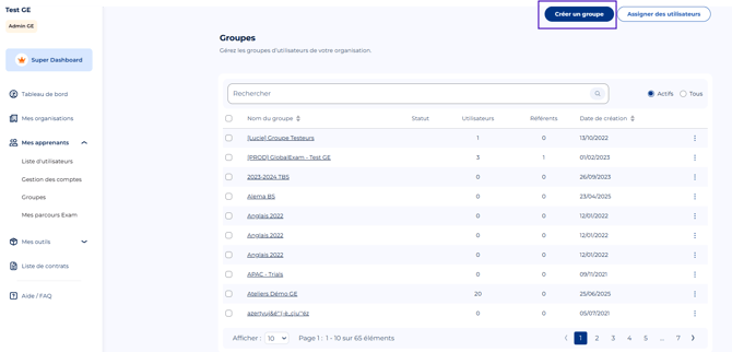 - Cliquez sur l’onglet « Mes apprenants » puis sélectionnez « Groupes » depuis le menu latéral gauche