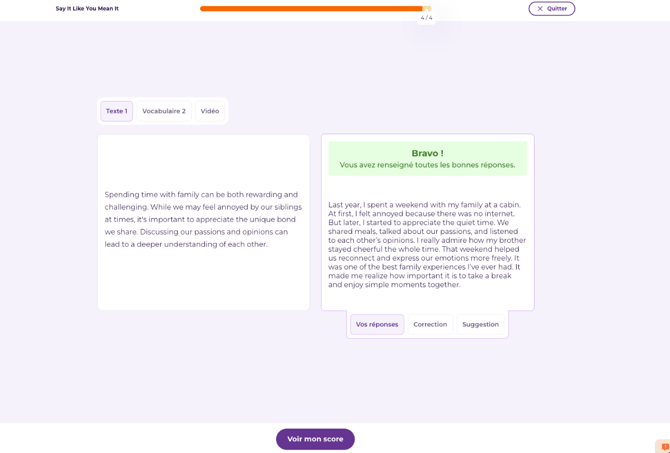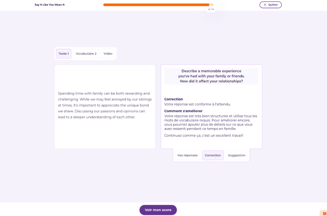 - Et consulter une suggestion de réponse modèle, pour comparer et apprendre.